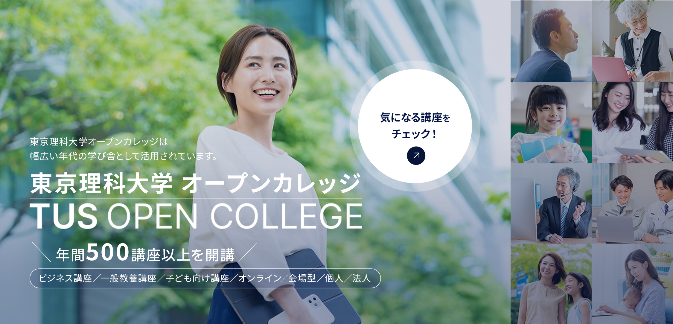 東京理科⼤学オープンカレッジは理科⼤ならではの「最先端の知」、互いに学びあう「共創の場」を提供しています。