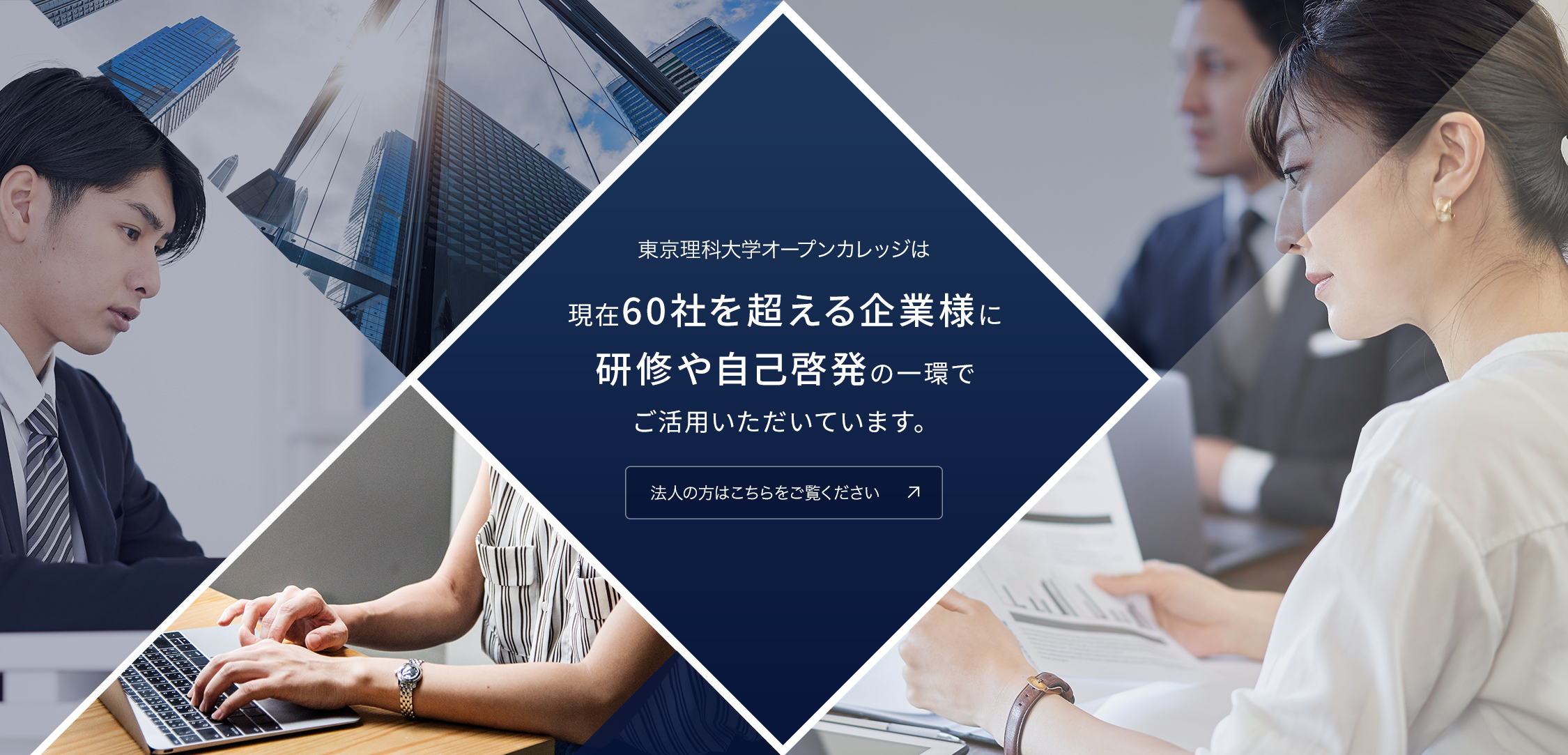 東京理科大学オープンカレッジの講座は、60社を超える企業の社員研修等で活用いただいています。