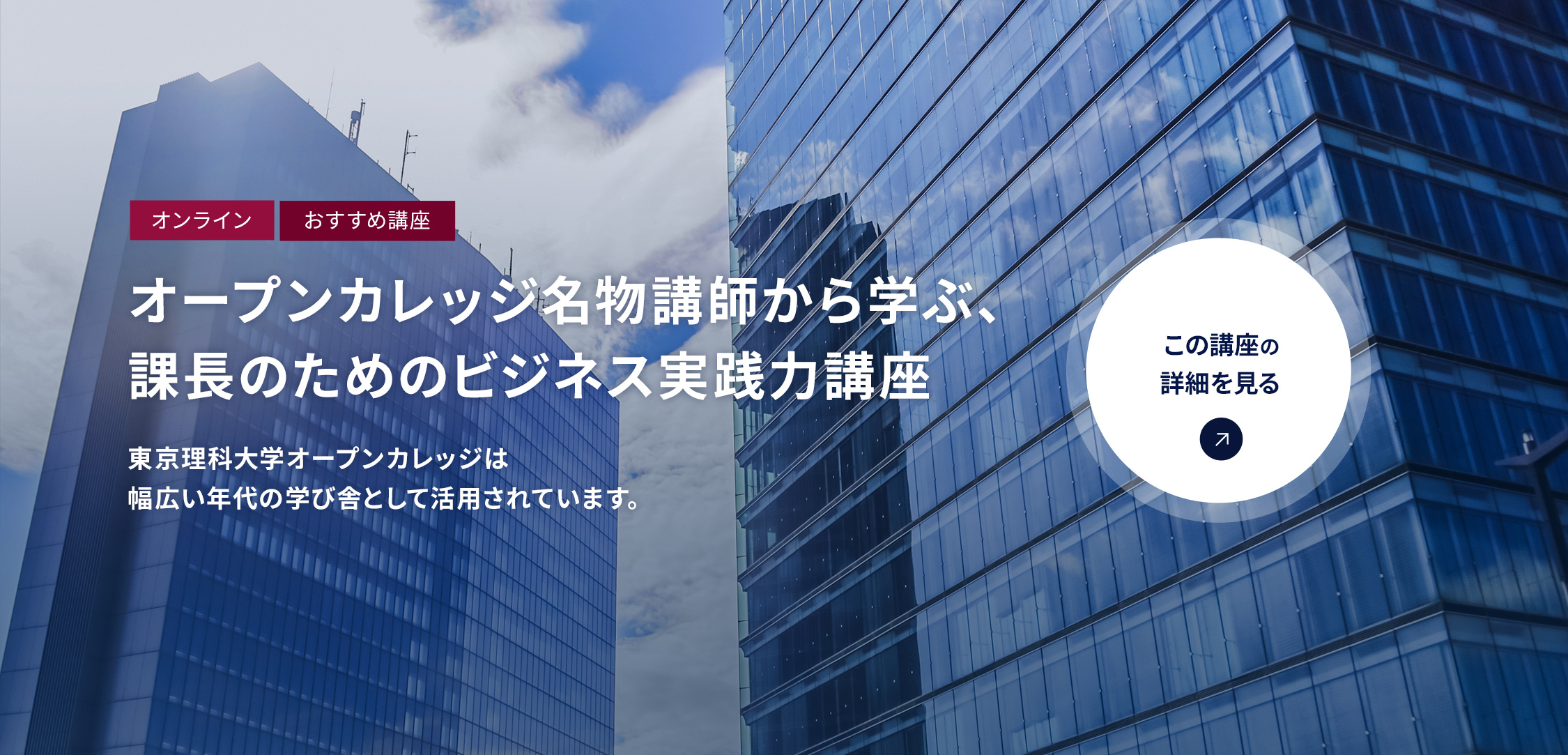 ⾃分⾃⾝のキャリア開発のため、東京理科⼤学オープンカレッジを利⽤してみてはいかがでしょうか。